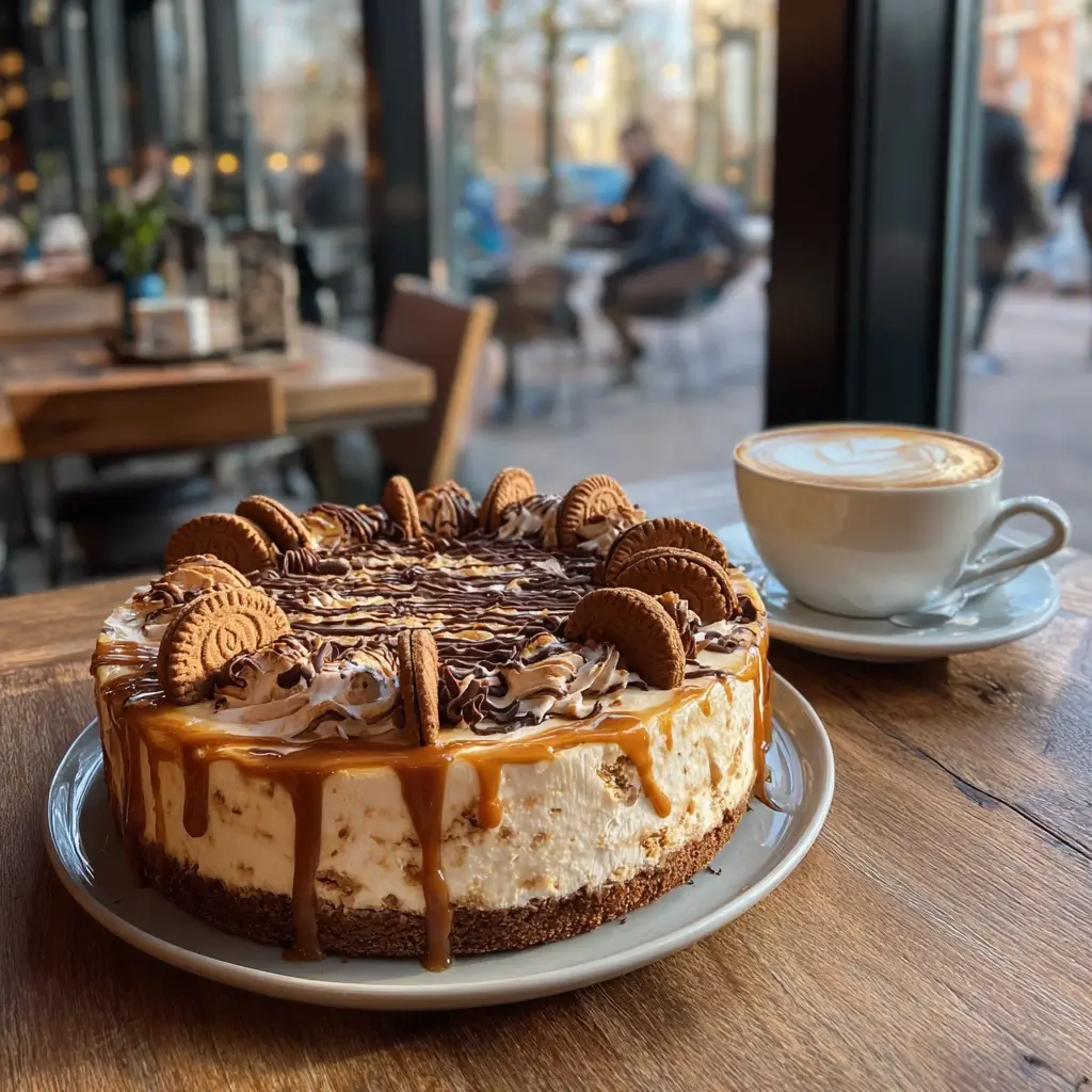 Lotus Cheesecake mit Biscoff Aufstrich und Dekoration.